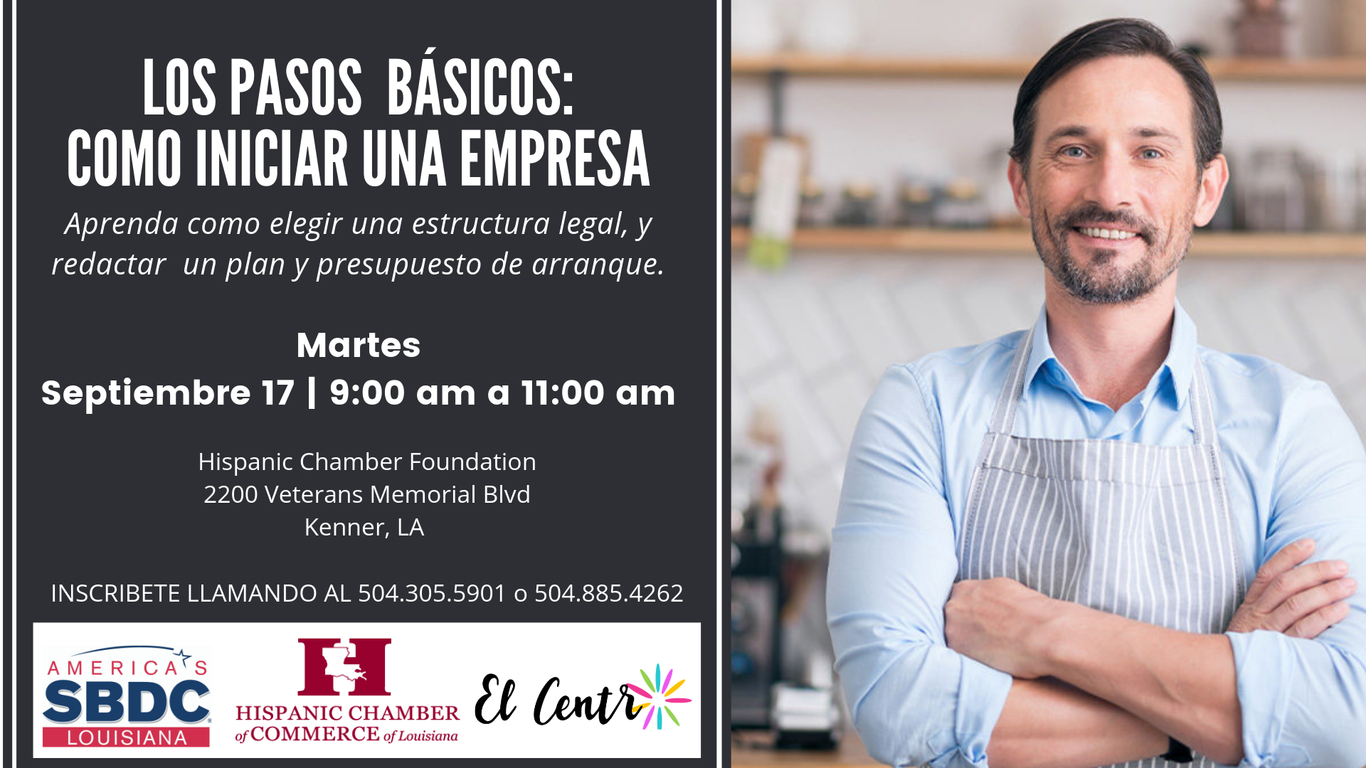 ¿Te has decidido a emprender un negocio y no conoces los paso básicos para empezar? Participa en este taller, te ensenaremos los pasos claves tales como; aprender como elegir una estructura legal, redactar un plan de negocio y proyectar el presupuesto.